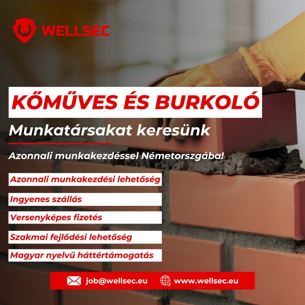 A Wellsec Invest nemzetközi épületgépészeti csapatába megbízható, tapasztalt kőműves és burkoló szakembereket keresünk, akik készen állnak egy új kihívásra stabil, hosszú távú munkalehetőséggel.